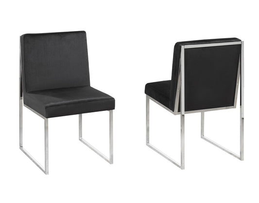 Contemporary Black Fabric Dining Chairs Set, Chrome Base (2-Pack)