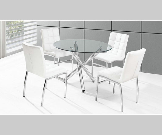 Olsen Black Modern Dining Set: Glass Tabletop, Sleek V-Base, PU Chrome Chairs