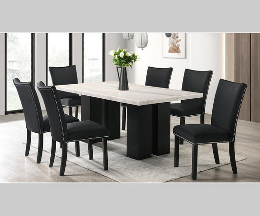 Lantana Modern Black Marble Top Dining Set with Six Velvet Chairs