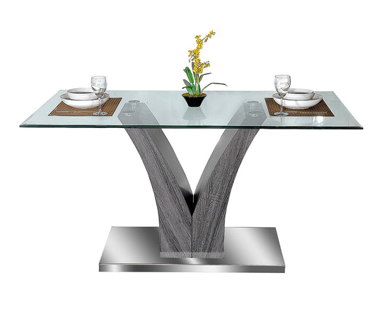 Modern Tempered Glass Dining Table with V-Shaped Base, Durable and Sleek