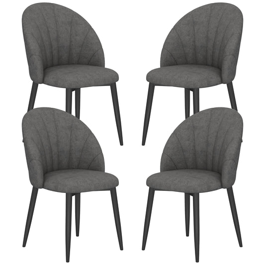 Modern Dining Chairs Set of 4, Upholstered Dining Room Chairs with Metal Legs, Shell Backrest, Padded Seat, Dark Grey