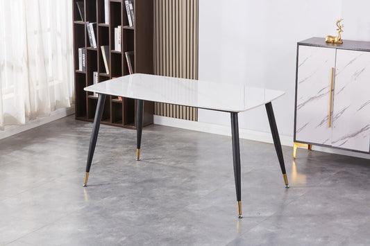 Warren 55" Dining Table Gloss Sintered Stone Top With Metal Legs- White