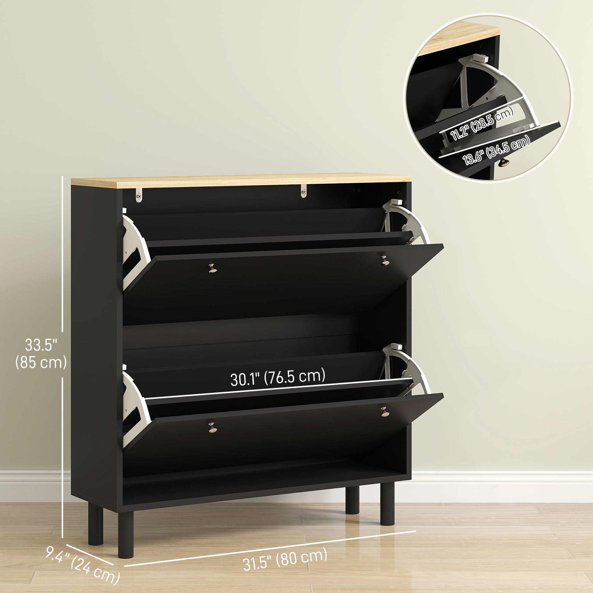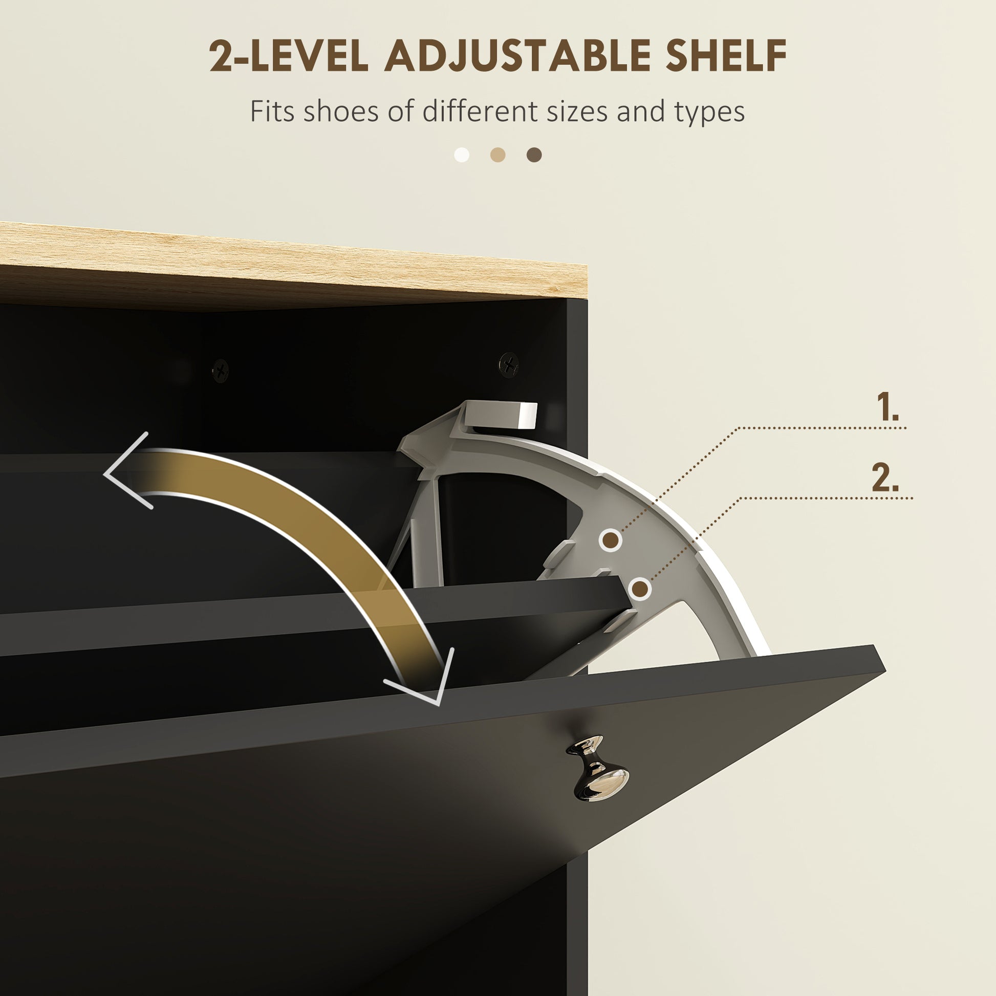2 Drawers Shoe Storage Cabinet with Adjustable Shelves for 16 Pairs of Shoes, Black