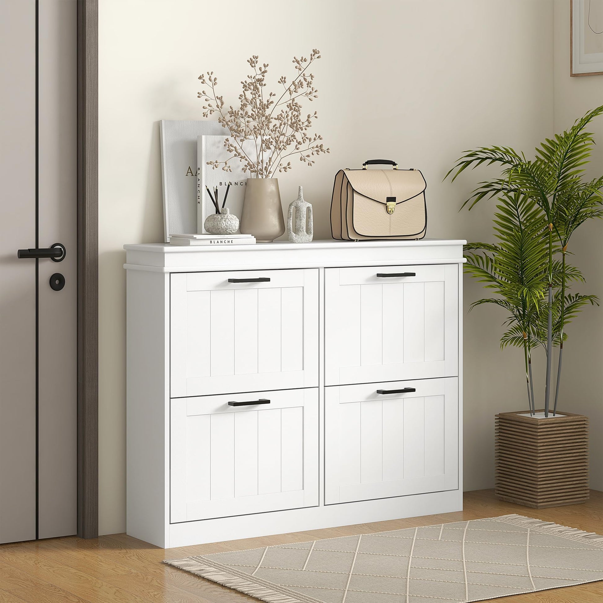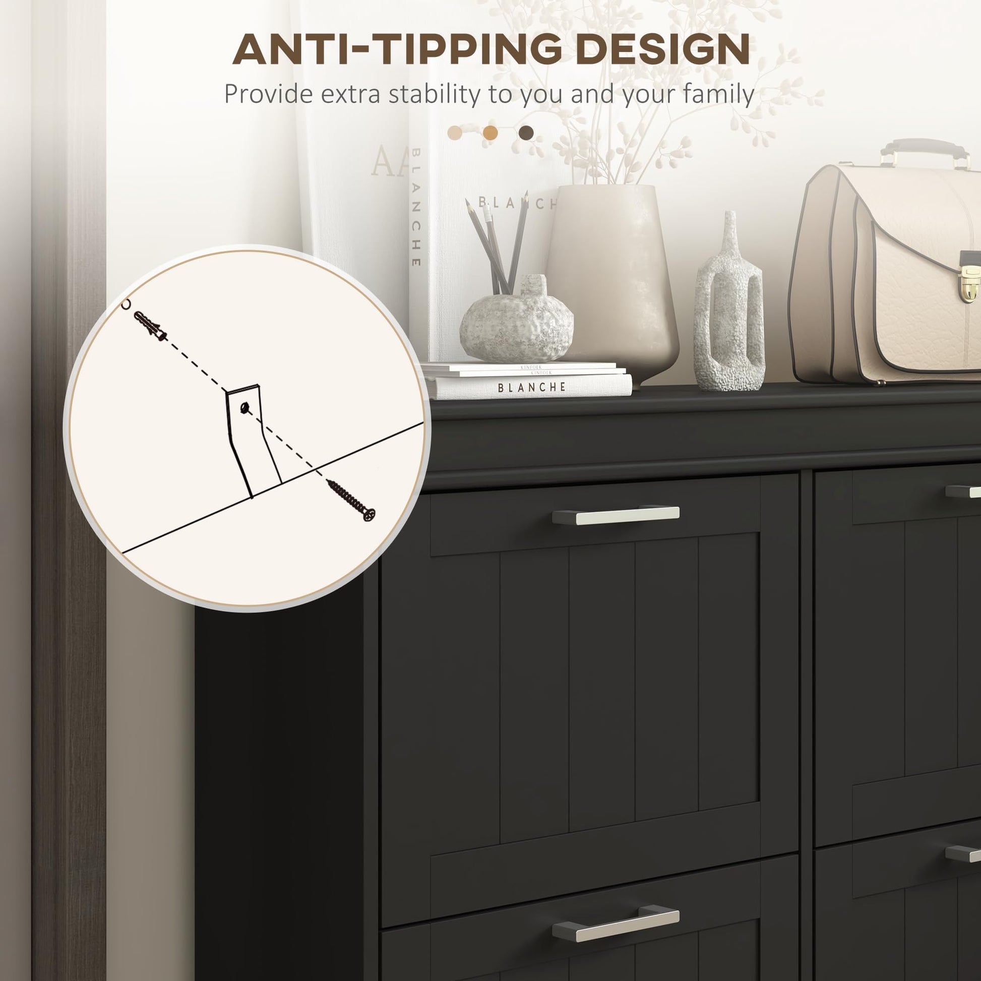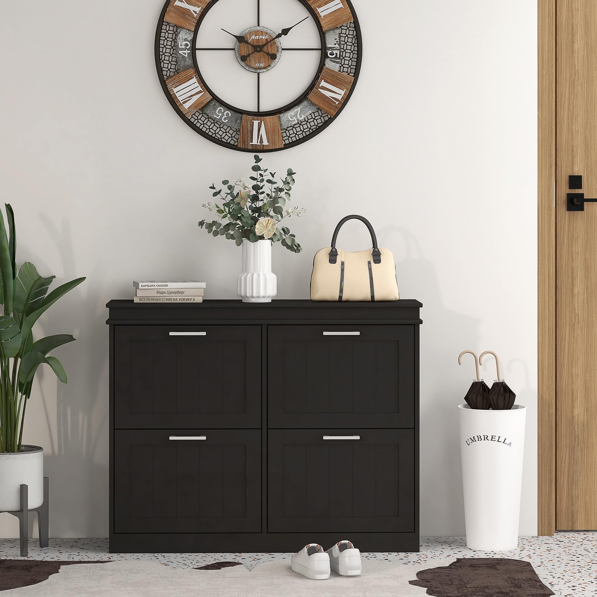 4 Drawers Entryway Shoe Cabinet, Narrow Shoe Storage Cabinet with 4 Flip Drawers and Adjustable Shelves for 20 Pairs of Shoes, Black
