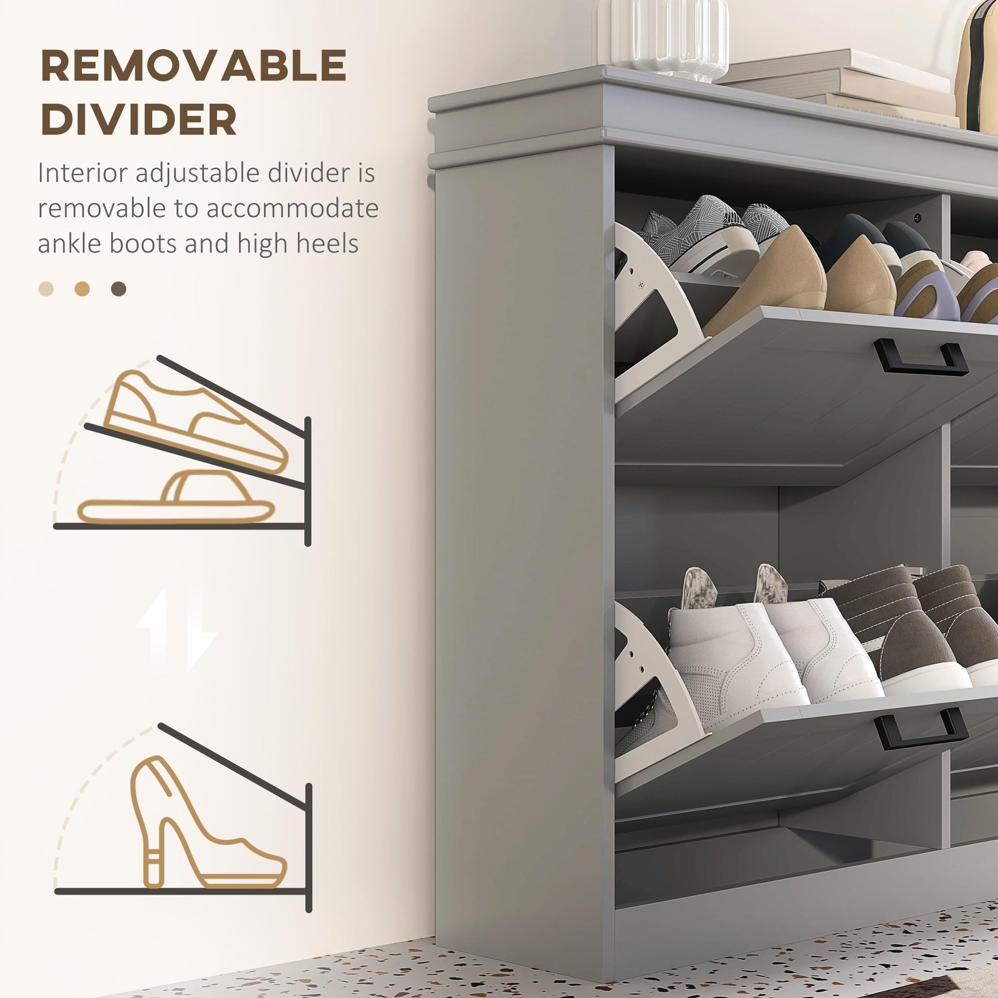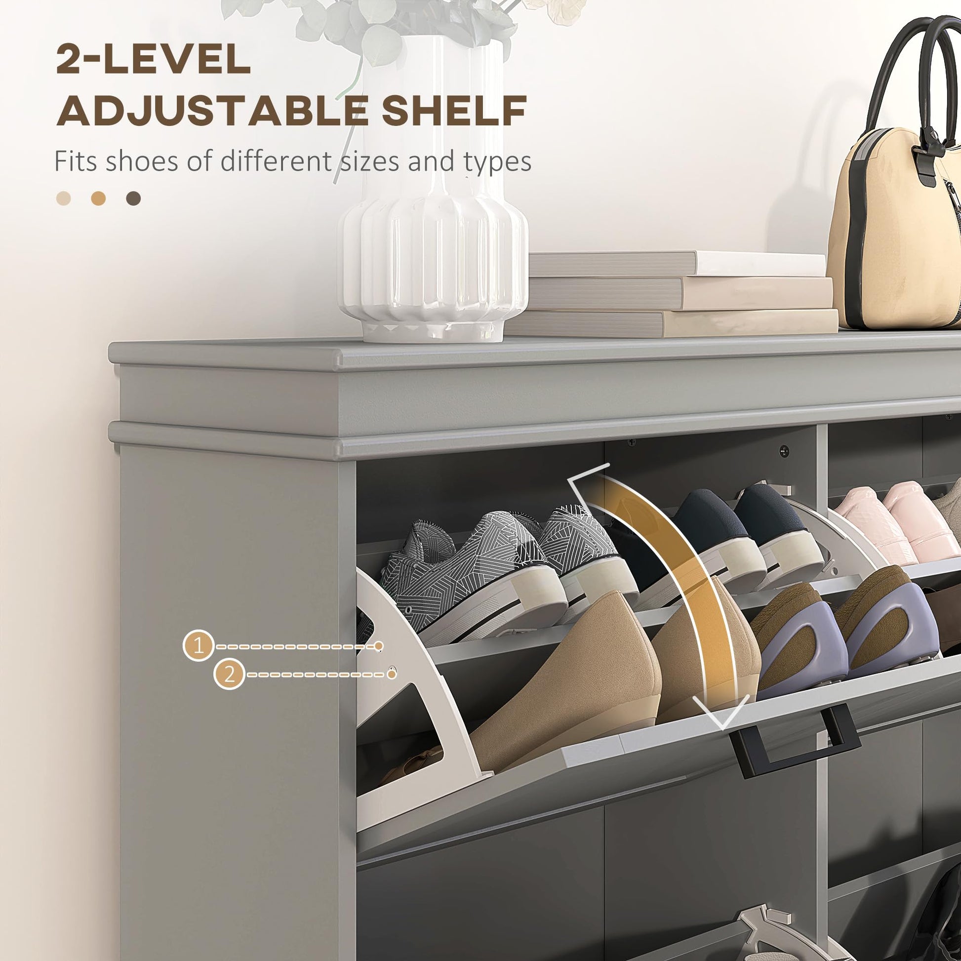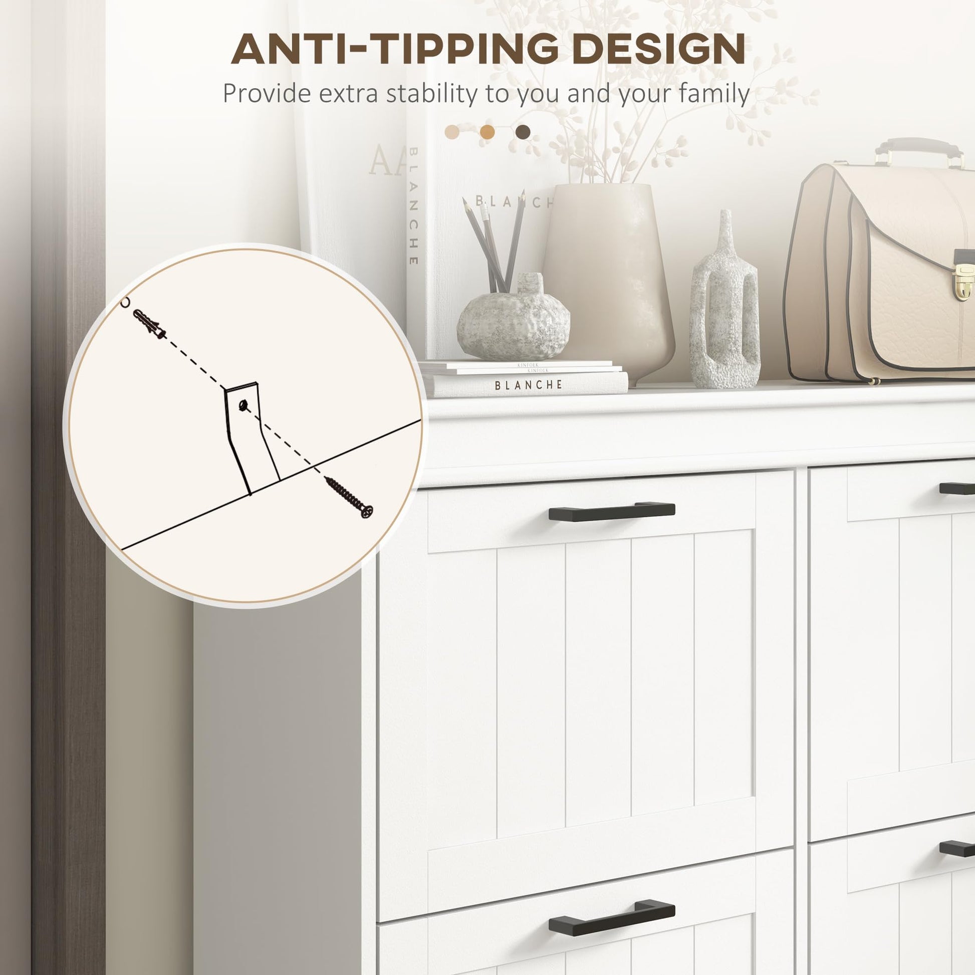 A compact storage solution is an essential addition to any household, but not every piece can meet your needs. Introducing our hallway storage cabinet, meticulously designed with you in mind. This shoe cabinet boasts three flip doors, each with adjustable shelves, catering to a variety of shoe storage needs. Furthermore, the countertop provides a stylish display area for your cherished decorations. Anti-tipping design allows it to be suitable for homes with children and pets.