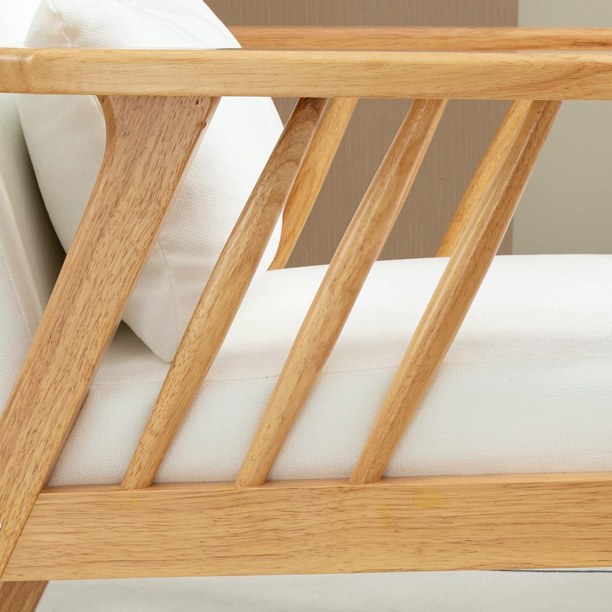 Accent Chairs with Cushioned Seat and Back, Upholstered Arm Chair for Bedroom, Living Room Chair with Throw Pillow and Wood Legs, Cream White