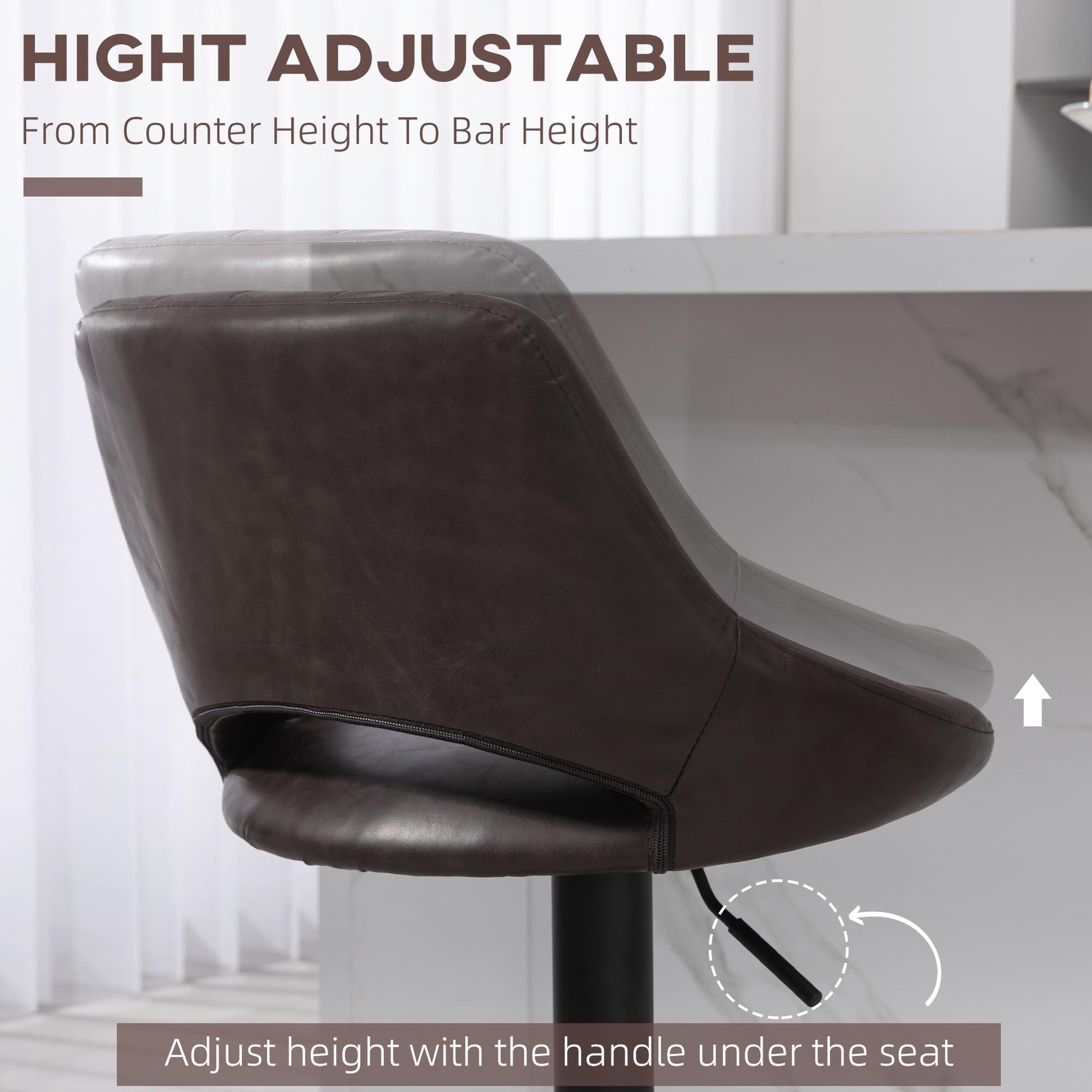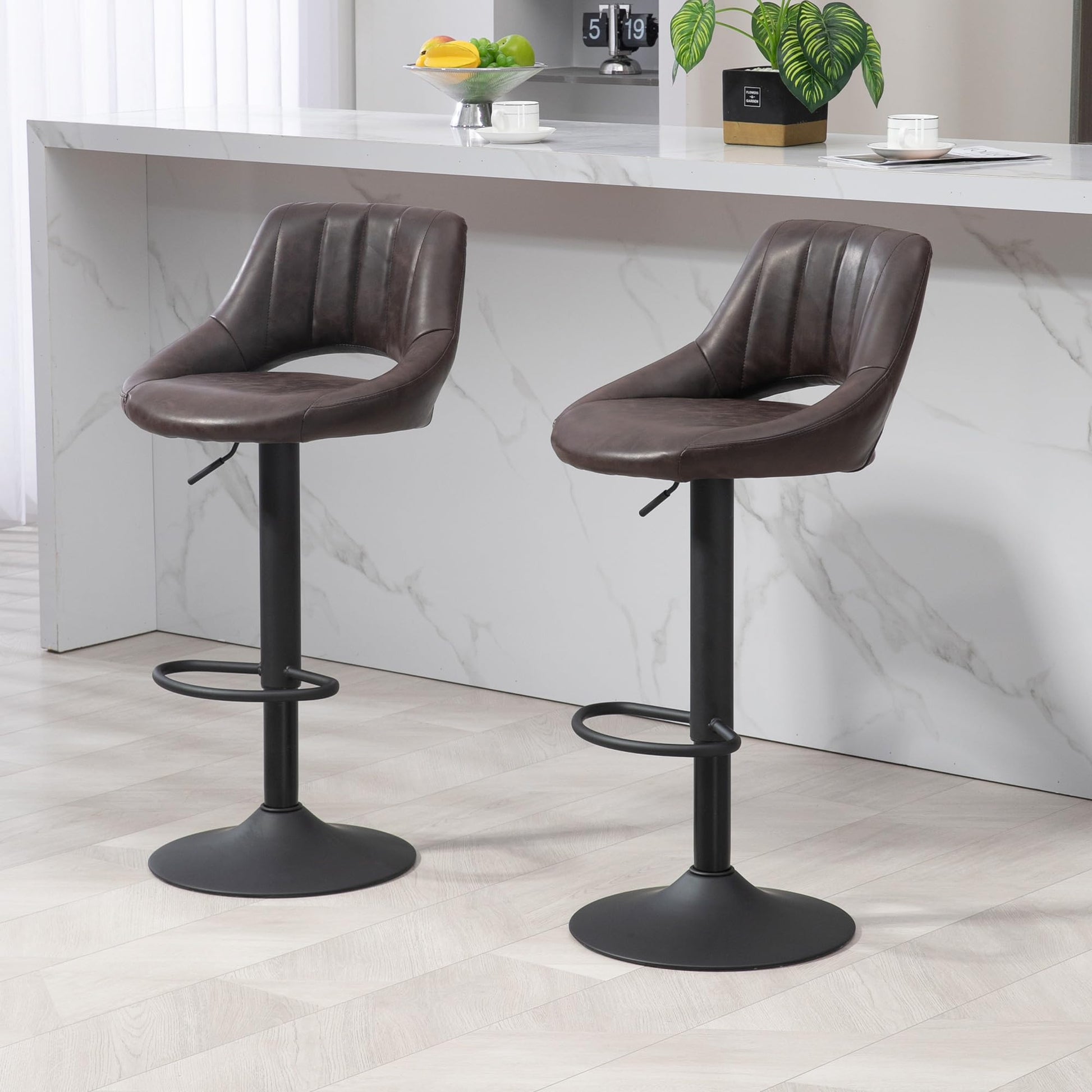 Provide modern style and convenient functionality in your kitchen or bar area with these 2 swivel bar stools . This counter stool has a soft cushioned tufted design, and an open back to make it more breathable. The height is adjustable. Besides, 360 swivels let you can turn around and talk to friends, and the footrest at the bottom takes the pressure off your back, so your legs aren't hanging down.