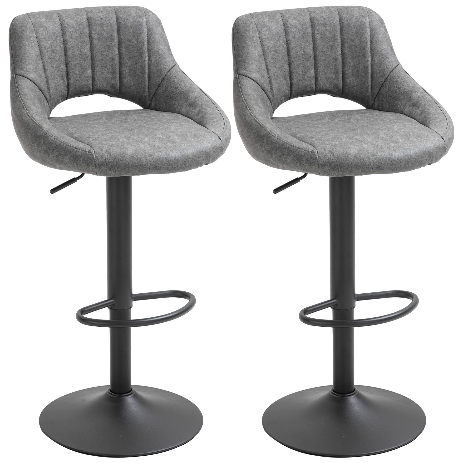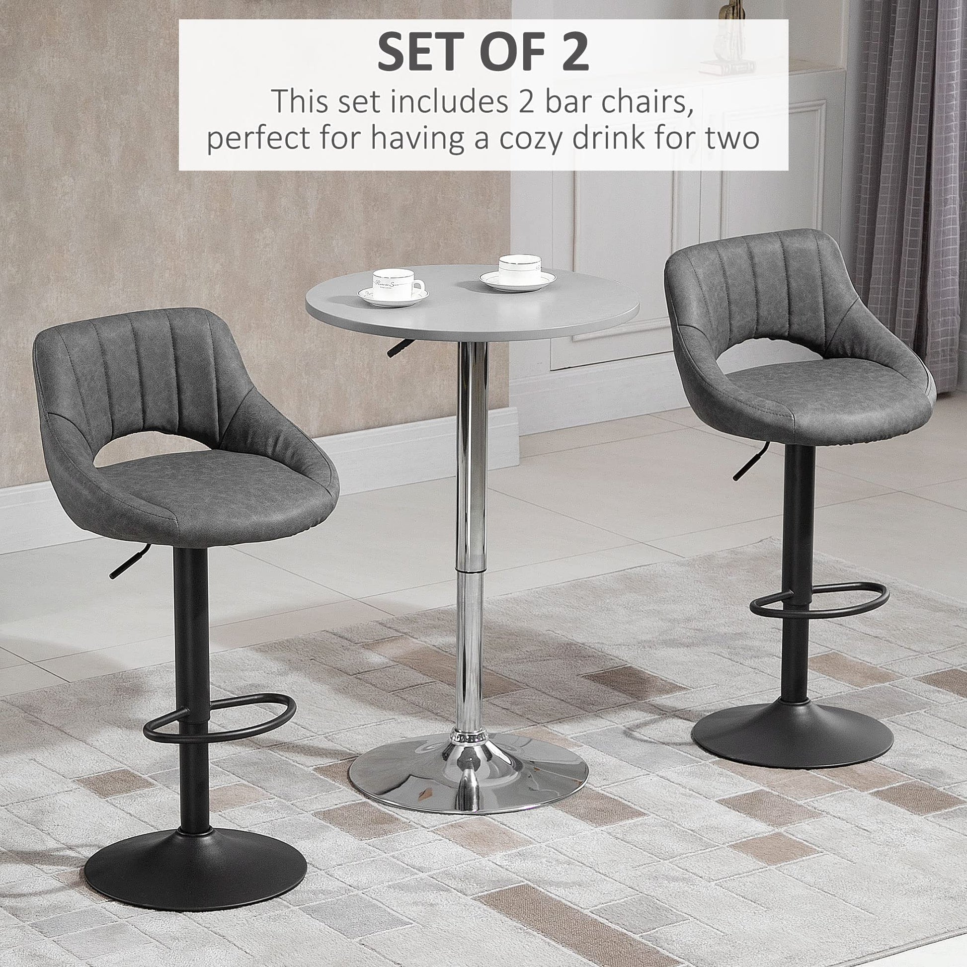Bar Stools Set of 2, Swivel Counter Height Barstools with Adjustable Height, Faux Leather Upholstered Bar Chairs with Round Metal Base and Footrest, Grey
