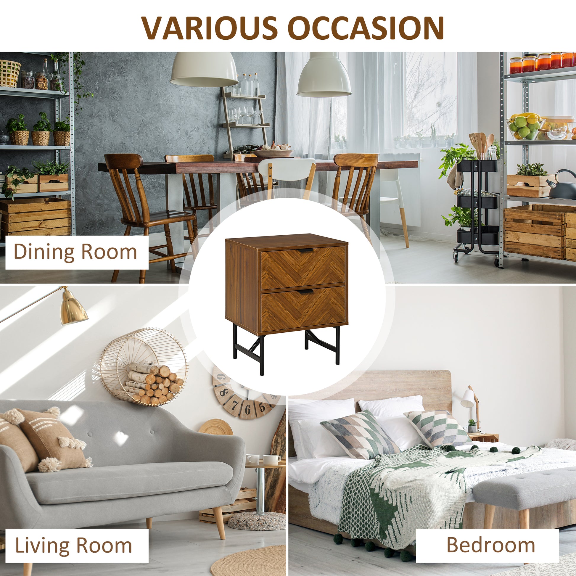 Bedside Table Night Stand, End Side Table Dresser Storage with 2 Drawers, Walnut Brown