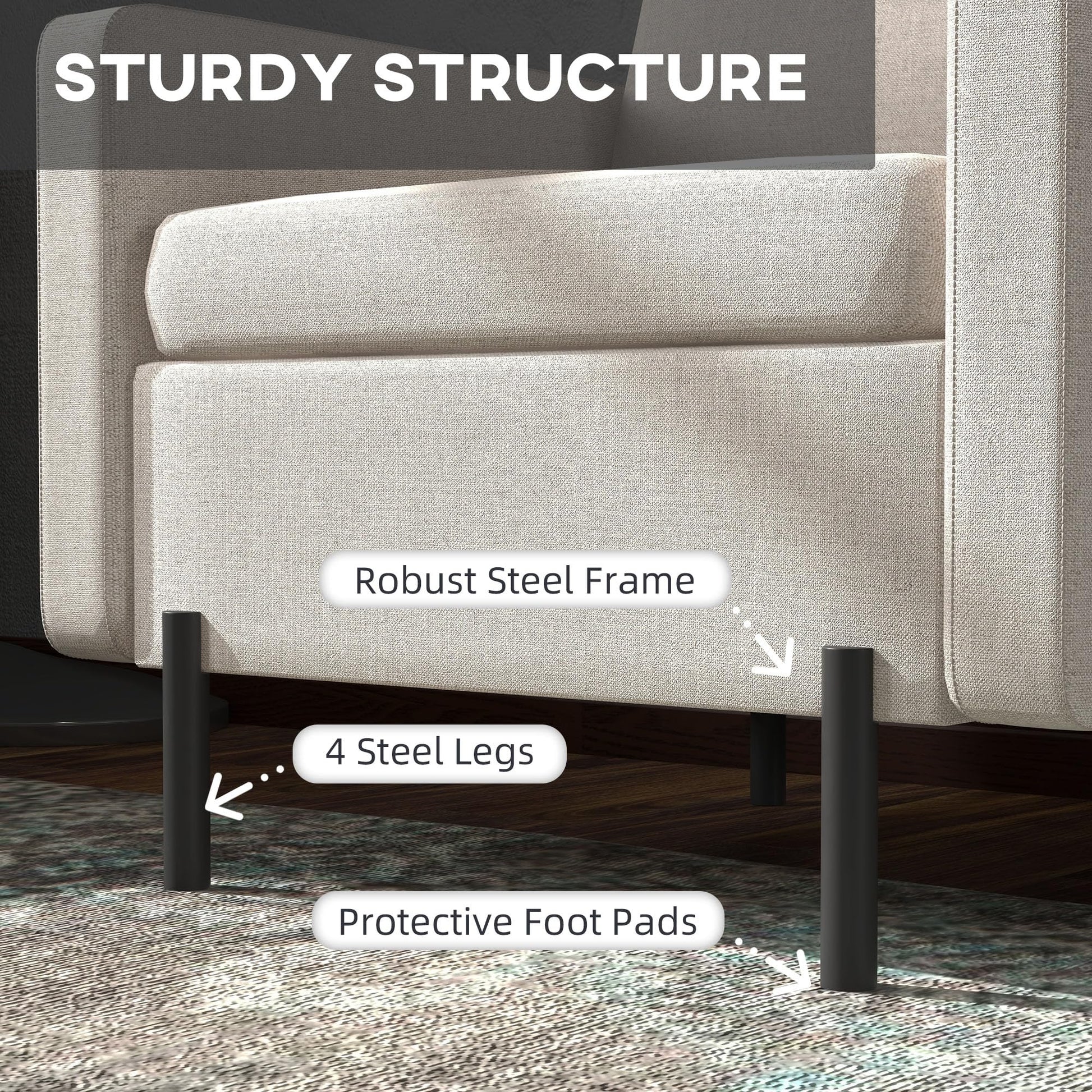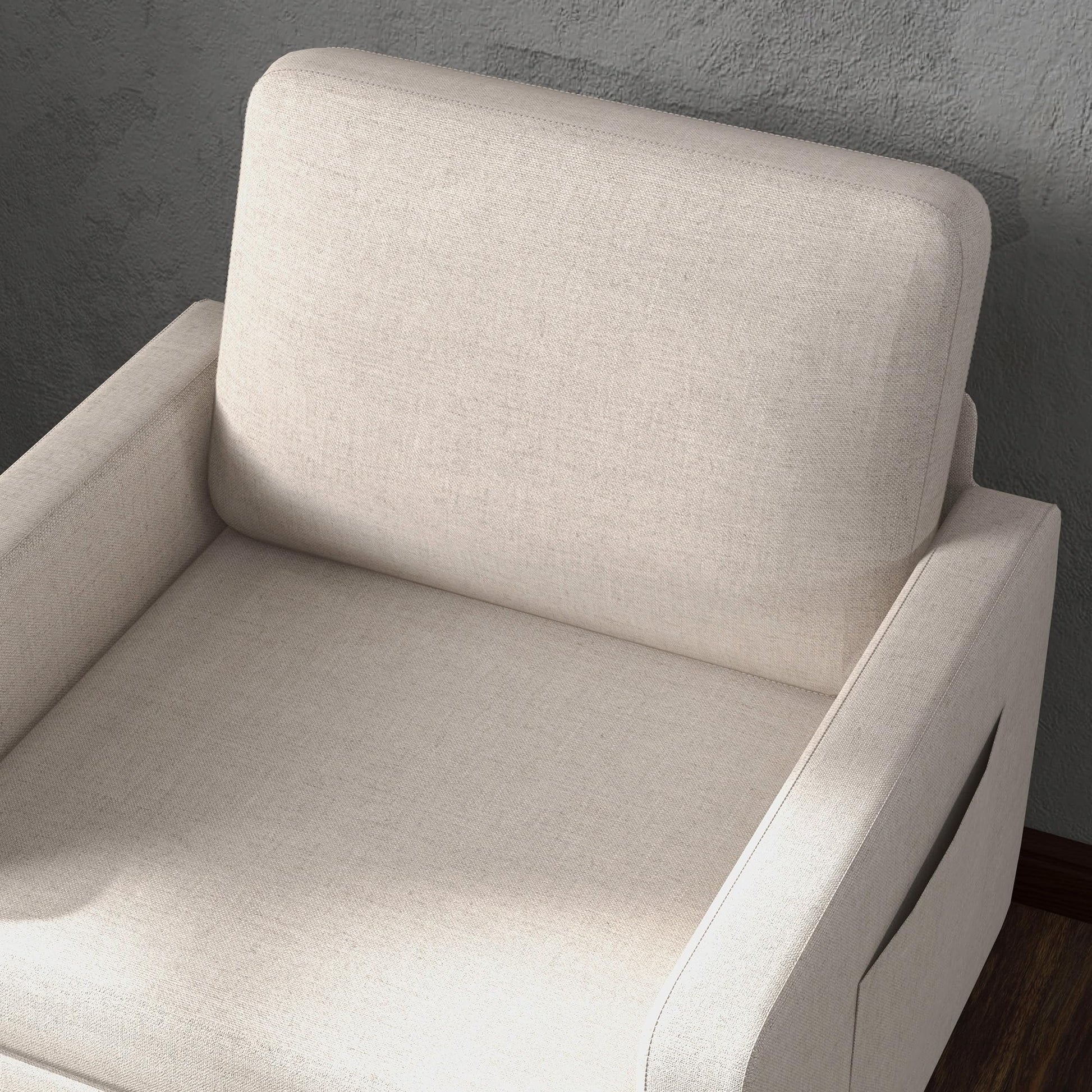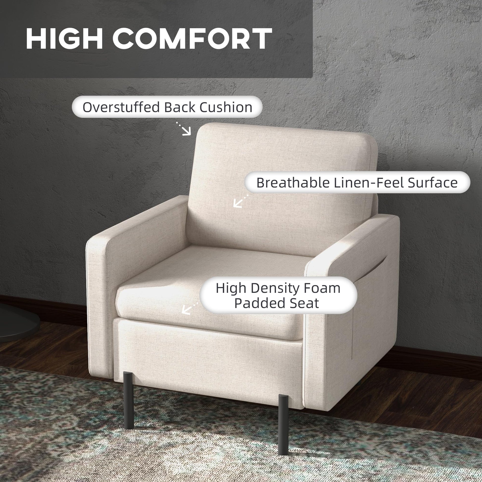 Fabric Accent Chair, Armchair, Modern Living Room Chair with Metal Legs, 2 Side Pockets, Thick Padding for Bedroom, Cream White