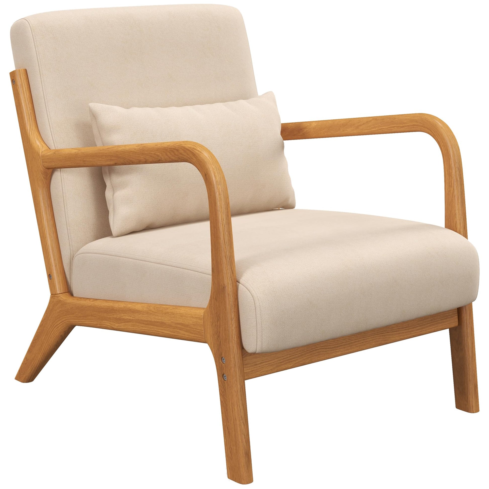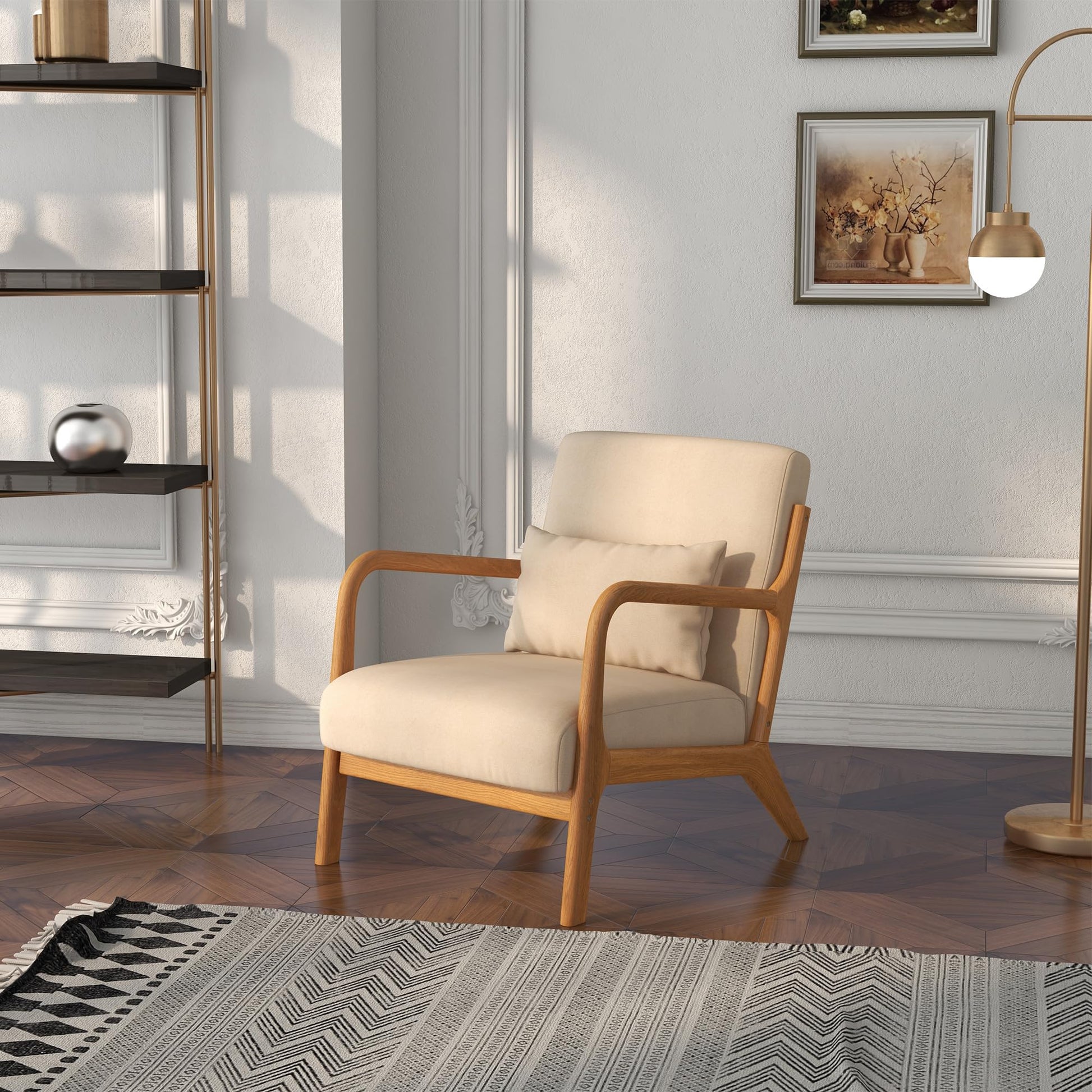 Modern Armchair with Wood Legs and Pillow, Upholstered Accent Chair for Living Room and Bedroom - Beige
