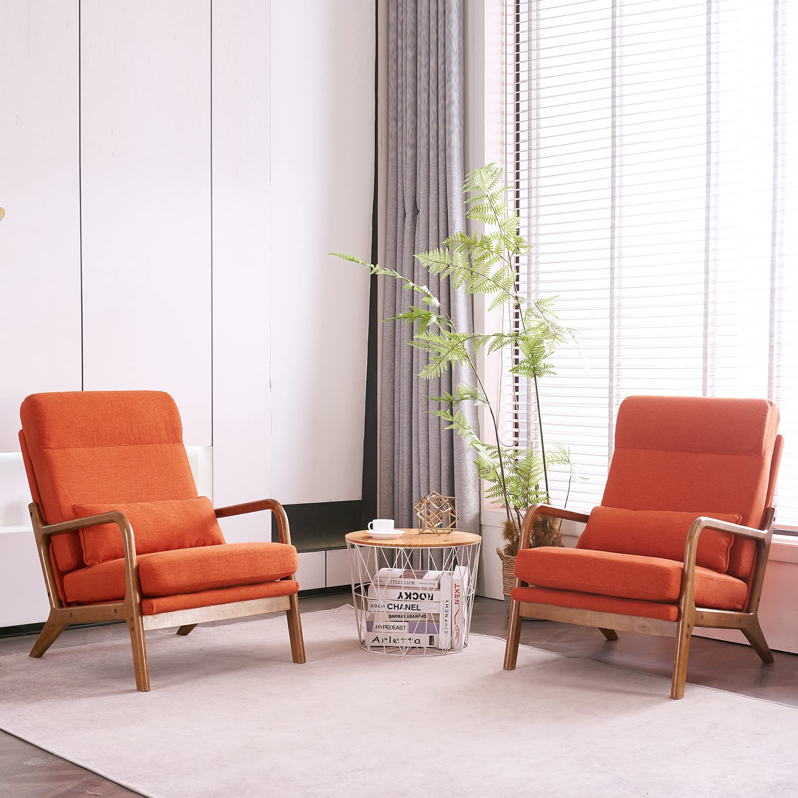 - MID-CENTURY CHARMING - Designed with curved arms and flared legs, this accent chair with extra pillow is full of mid-century style charming; The beige color of fabric with natural wood color of frame is a nice combination, which is suitable for any style of your home decorations