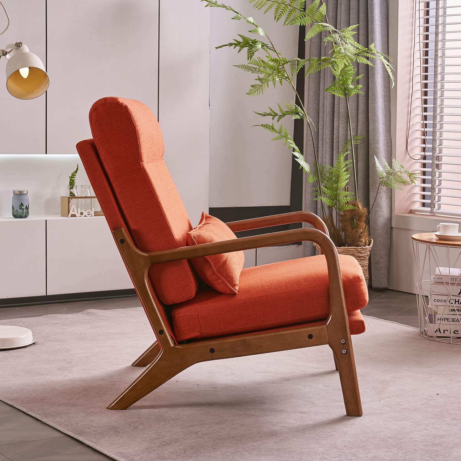 - HUMANIZED DESIGN - The ergonomic angle of the backrest and armrest is aimed for good relax when sitting and putting your arms on; Comfortable linen fabric with high-density sponge inside, enough back support, soft back pillow, and solid wood frame bring maximum comfort & cozy