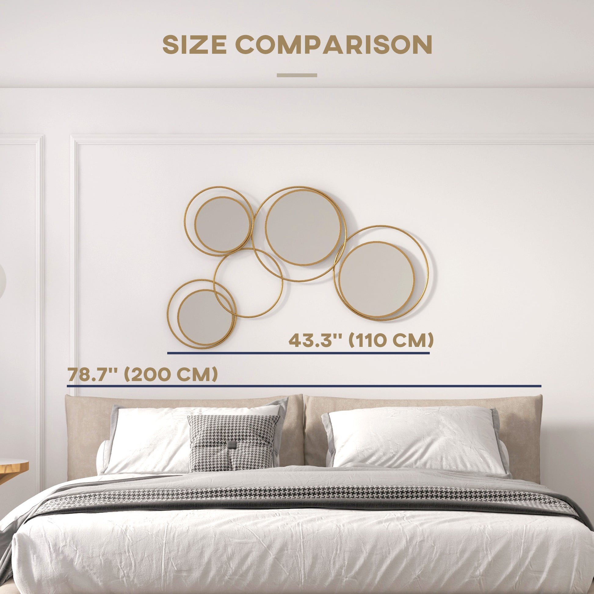 Metal Wall Mirror Decor, Modern Decorative Wall Art, Hanging Home Decor for Living Room Bedroom, Gold Tone