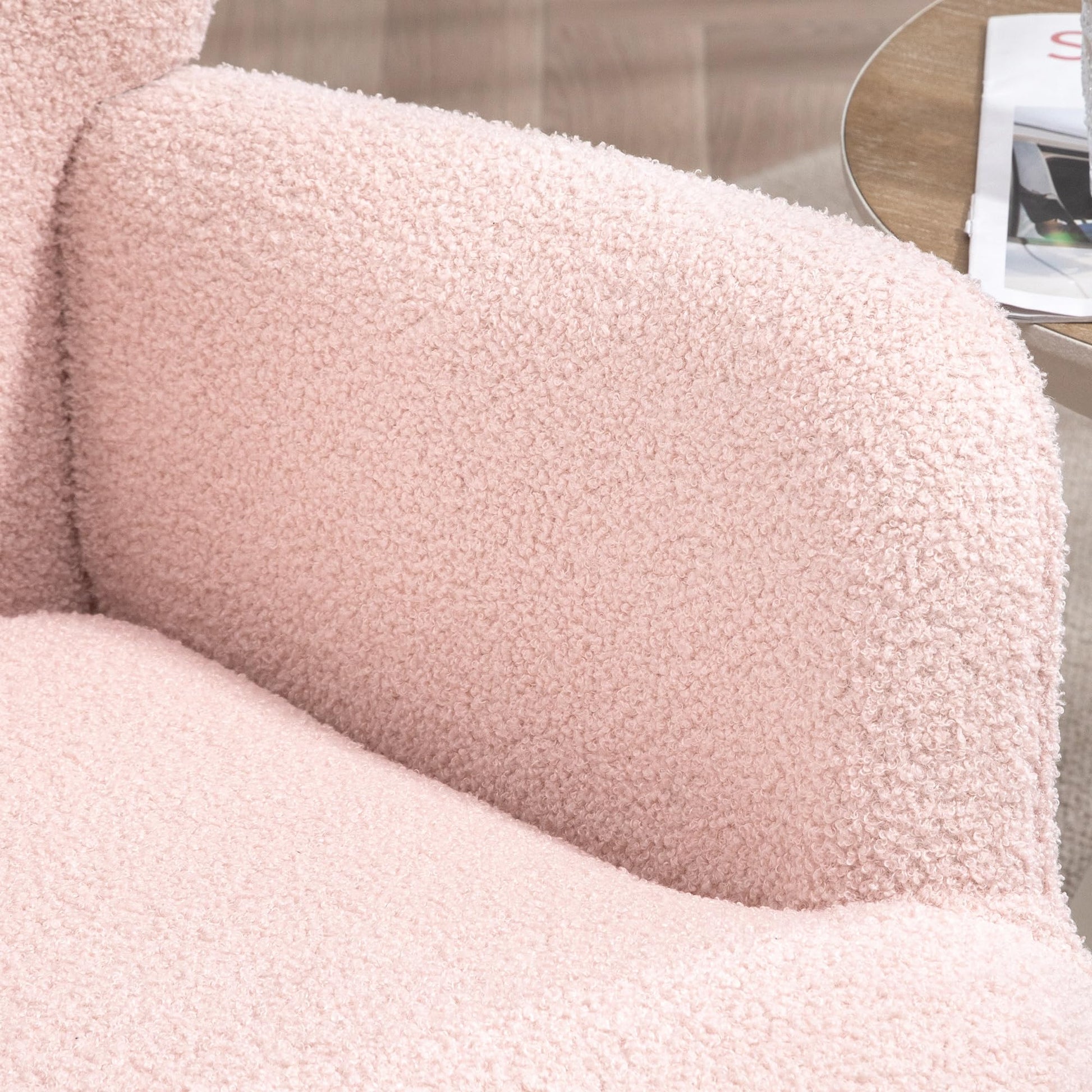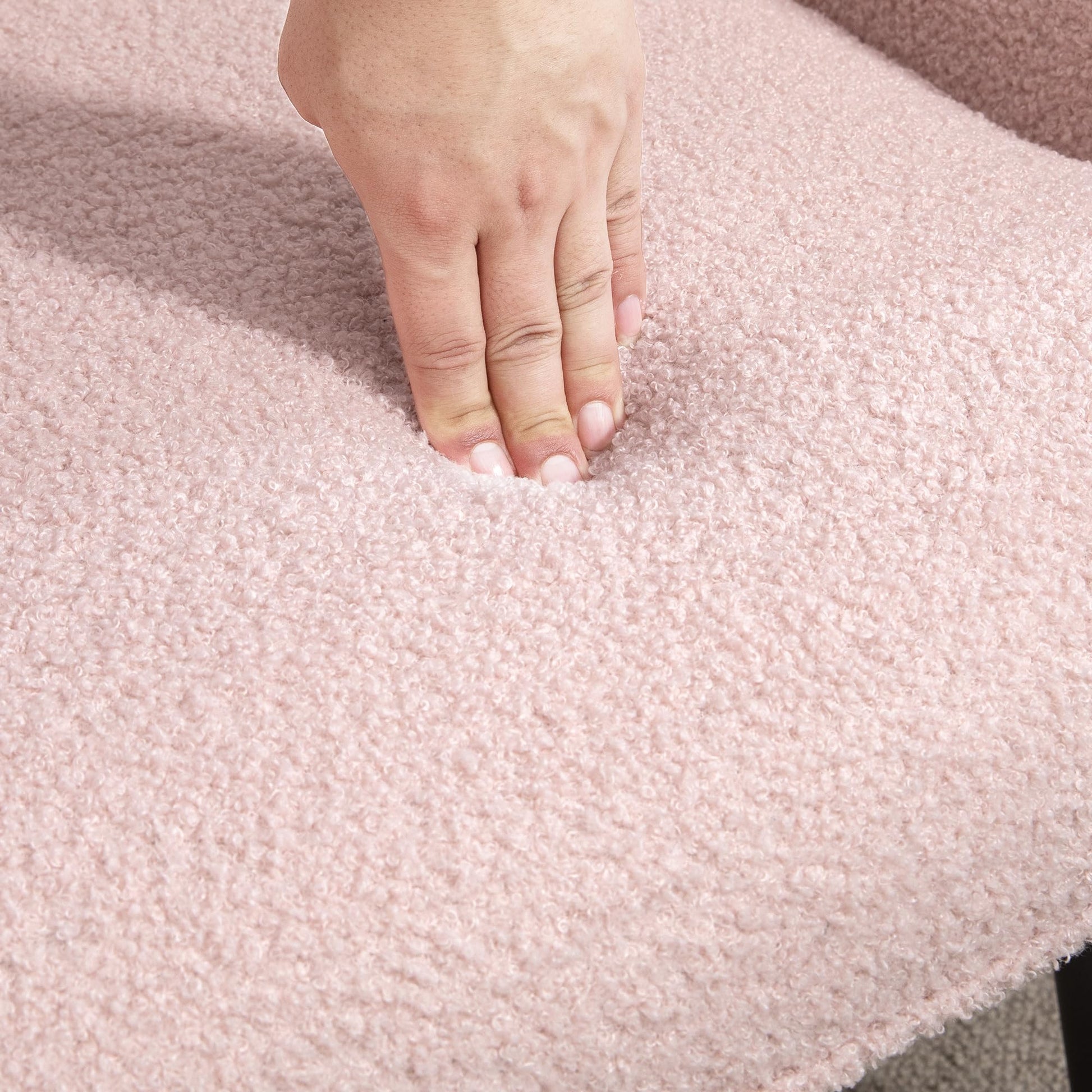 Modern Sherpa Boucle Accent Chair, Upholstered Wingback Armchair, Fluffy Vanity Chair for Living Room, Bedroom, Reading Room, Pink